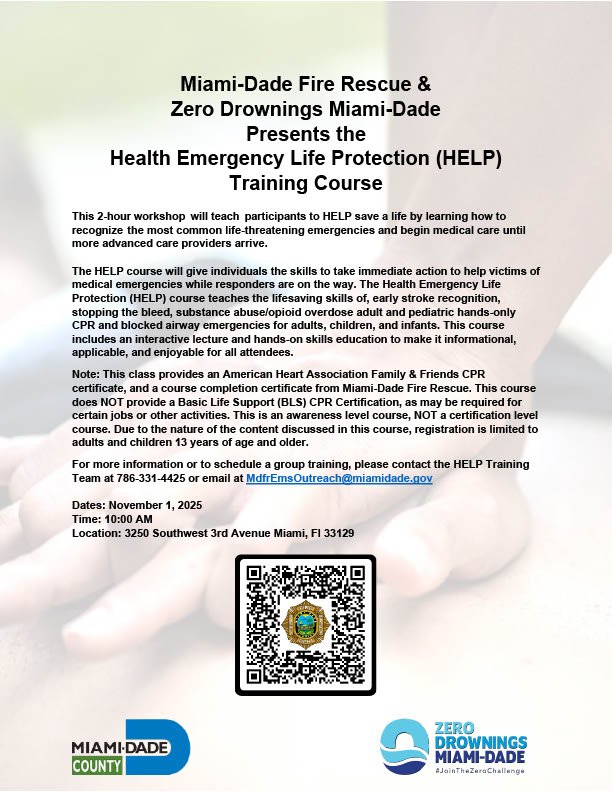 November 1, 2025 | Miami-Dade Fire Rescue & Zero Drownings Miami-Dade Presents the Health Emergency Life Protection (HELP) Training Course